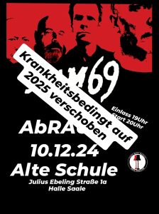 Sham69 mit Tim V. + AbRaumDecember 9 @ 19:00 – 22:30Spieleabend WeihnachtsspecialDecember 16 @ 18:30 – 22:00Hardsell + BlutCypher + HodenstolzDecember 19 @ 19:00 – 23:59